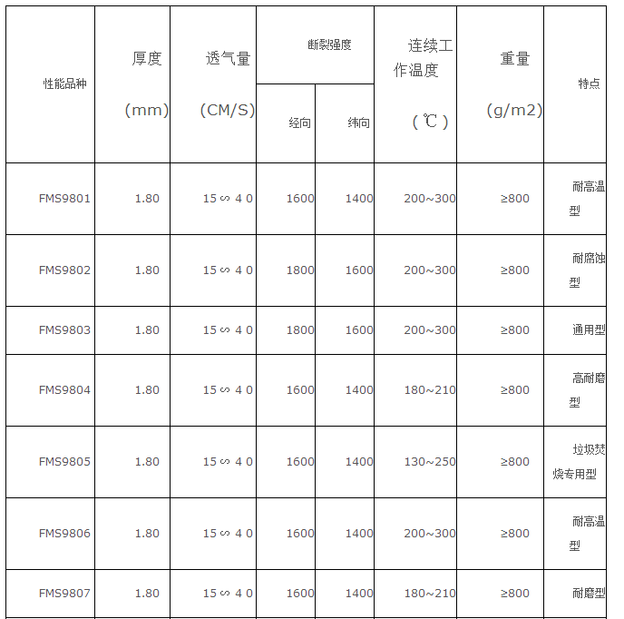 氟美斯除塵布袋在玻纖針刺氈的基礎(chǔ)上添加P84纖維,使氈層更加緊密,纖維之間的纏繞增強,可以應(yīng)對更高的過濾風(fēng)速。氟美斯除塵布袋廣泛應(yīng)用于鋼鐵有色金屬、化工、炭黑、建材、電力部門。是高效的耐高溫、耐腐蝕、耐酸堿、耐折耐磨復(fù)合型產(chǎn)品。氟美斯是為高爐煤氣干法除塵研制成功的一種新型高溫濾料。氟美斯除塵布袋在玻纖針刺氈的基礎(chǔ)上添加P84纖維,使氈層更加緊密,纖維之間的纏繞增強,可以應(yīng)對更高的過濾風(fēng)速。P84纖維呈三葉型截面,從而形成很高的表面積 系數(shù),增大了捕塵機率,而且該纖維特殊的截面形態(tài),使粉塵大多數(shù)被集中到濾料表面,較難滲透到濾料內(nèi)部堵塞空隙,降低運行阻力從而提高了過濾風(fēng)速。