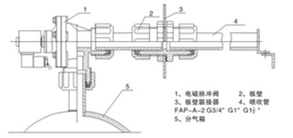 膜片把電磁脈沖閥分成前、后二個氣室,當接通壓縮空氣時,壓縮空氣通過節(jié)流孔進入后氣室,此時后氣室壓力將膜片組件緊貼閥的輸出口,電磁脈沖閥處于“關(guān)閉”狀態(tài)。